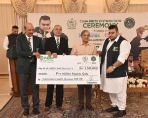 The Prime Minister gave away cash prizes to the players including Arshad Nadeem, Nooh Dastgir Butt, Inam Butt, Shah Hussain, Sharif Tahir and several others at the special ceremony at the PM House.